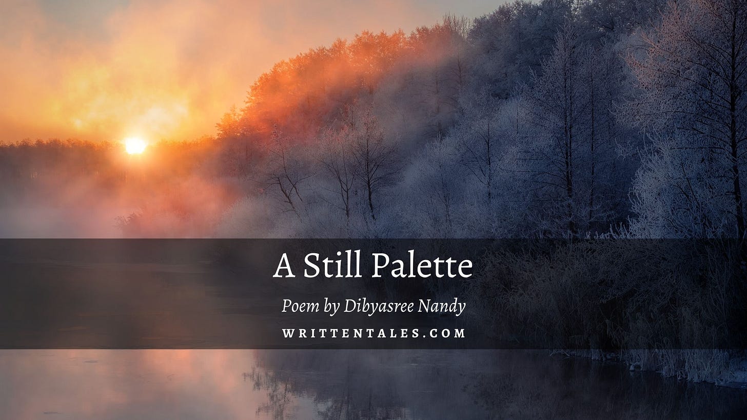 Curling arcs of dazzling alabaster, Besmirching the early mauve snow, The clouds, the Sun's silvery veil, A bleak day gracing the slate tapestry, December's heaven, the gods asleep, The thin blanket of Sol's glitter pulled.
