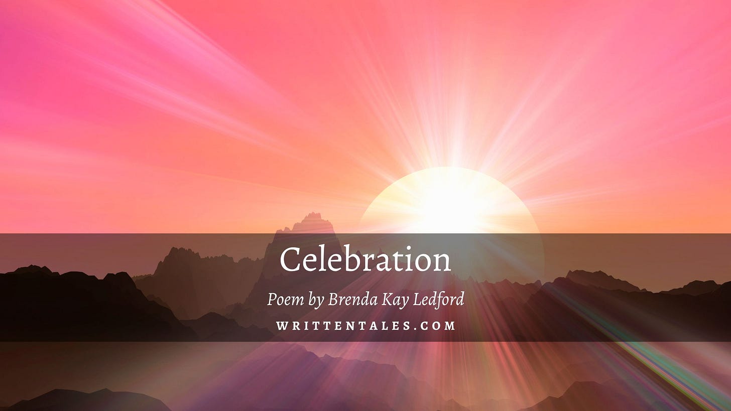 Today I celebrate life: a new-born baby cuddled in his mother’s arms.  Today I celebrate beauty: a raspberry sunrise, red and golden tulips