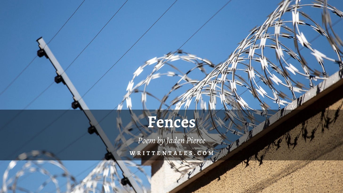 Who in the hell invented fences? They encage one like an animal. I cut my finger once trying to climb one Acting as a barrier of separation, Don’t cross this line or else. Doesn’t matter what the fuck they’re made of: Metal, wood, or tinfoil All serving the same purpose Like three blind mice looking for a knife, I ought to tear down a fence. Kick it down with my shoe — One too damn tall to climb. That would make for some excitement. Imagine a world without fences. Then one could really be free.